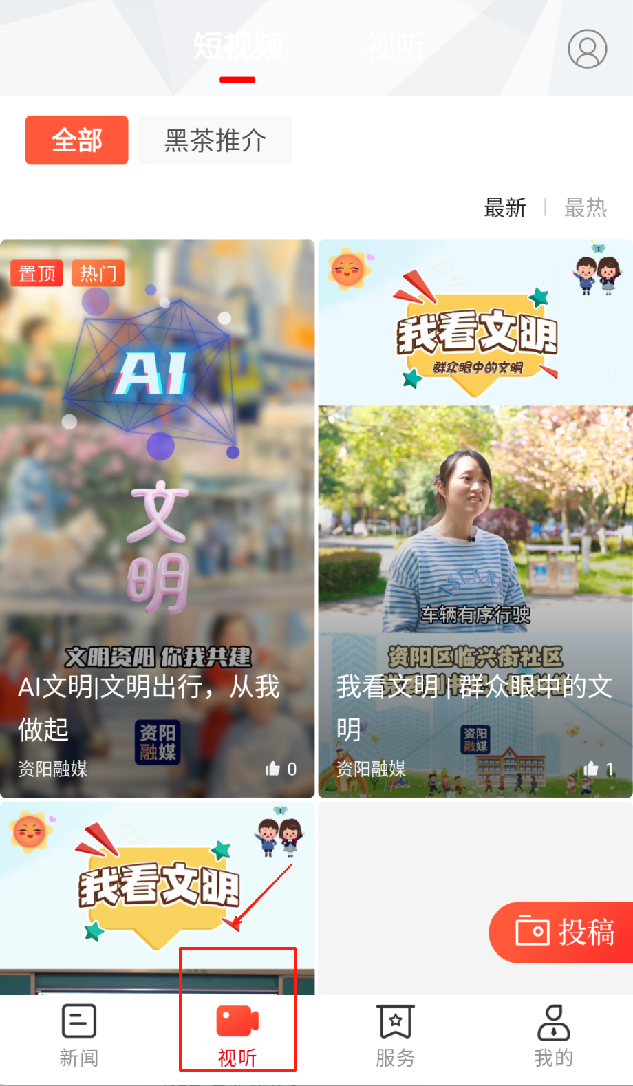 1、通过视听中心观看本地文化纪录片,参与话题互动赢取积分兑换社区商户优惠券。