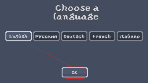 1、选择语言:在游戏初始界面,点击“OK”按钮,然后选择你熟悉的语言,选择后点击“OK”确认。