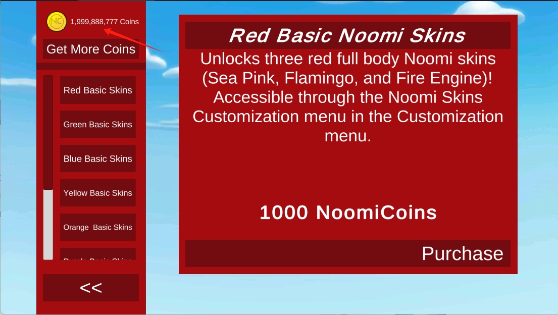 2、在商店界面,点击“Get More Coins”获取更多游戏币,用于购买和解锁新皮肤。
