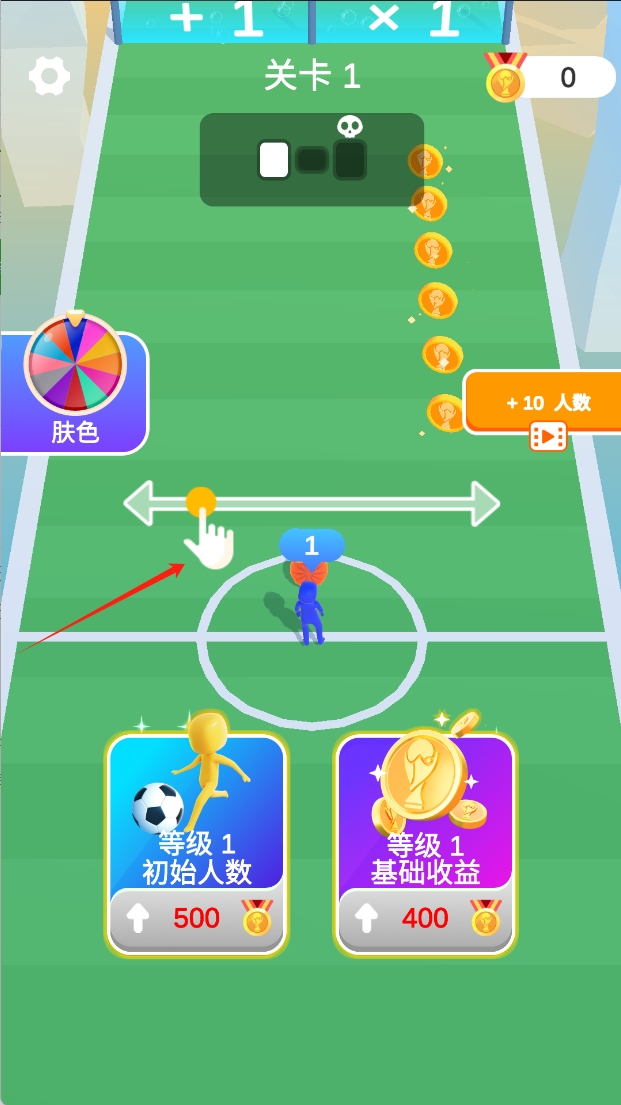 1、基础跑酷模式需要操控角色带球穿越障碍,在限定时间内完成射门,沿途收集金币和道具。