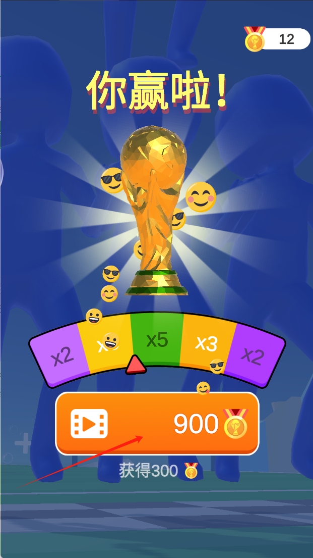 2、赢得比赛后,点击“获得300”按钮领取奖励,积累金币,用于提升角色等级和能力。