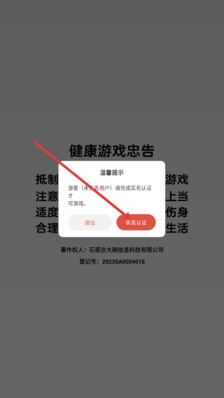 1、进入游戏,点击【实名认证】。