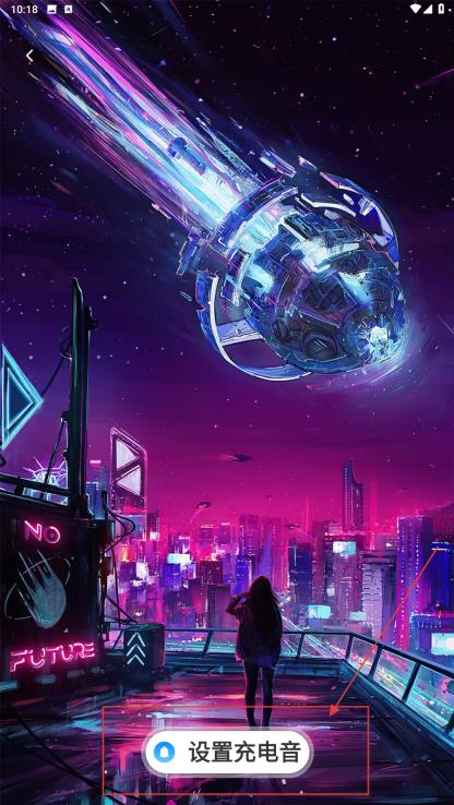 2、选喜欢的壁纸(如星空、赛博朋克风),点【设置充电音】。