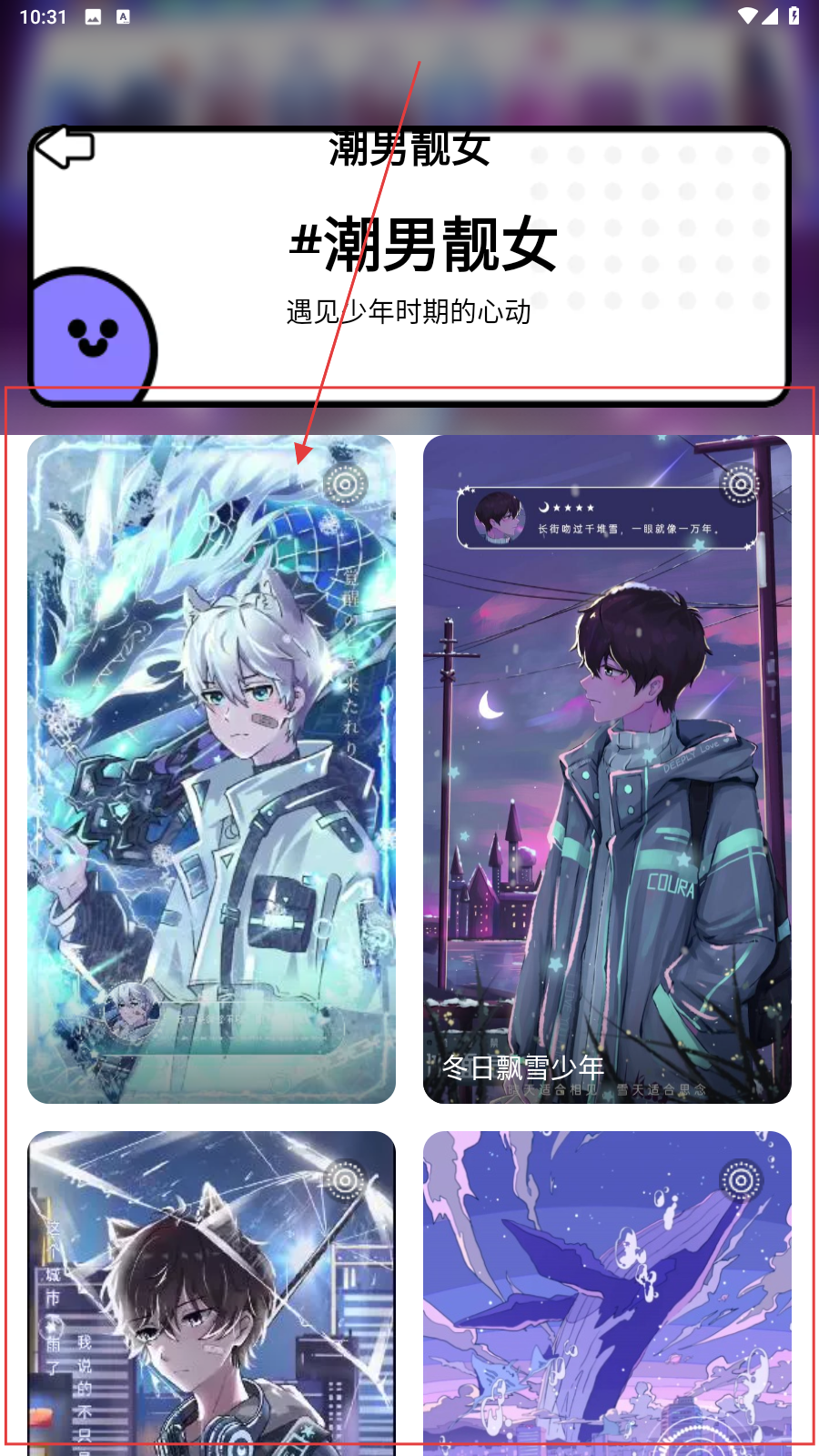 2、进入分类详情(如潮男靓女),选喜欢的壁纸(如二次元少年)。