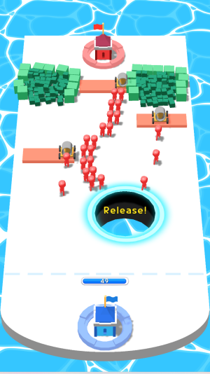 3、完成关卡:在限定时间内,完成关卡目标,如将所有角色引导至安全区域,然后点击“Release!”按钮释放角色,完成关卡。
