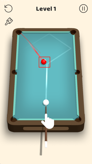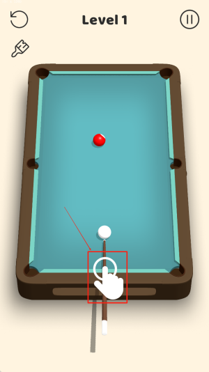 2、瞄准并击球:将球杆对准红色球,松开手指进行击球,尝试将球打入袋中。