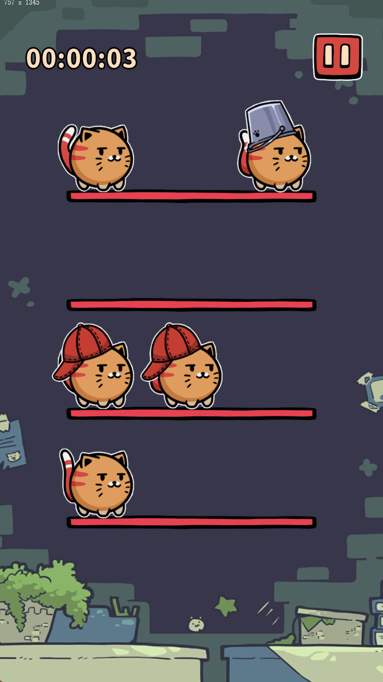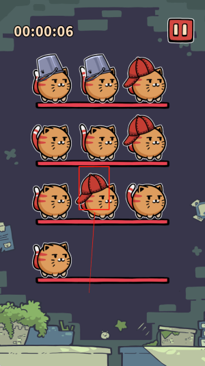 2、戳猫:在游戏界面中,快速点击任意一只猫,每戳一次猫就会移动到下一个位置。