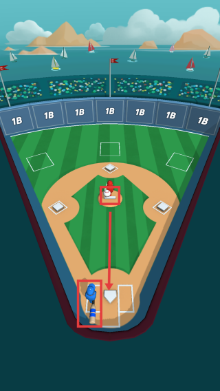 1、熟悉棒球场地布局,明确击球手(蓝色角色)和投球手(红色角色)位置,准备迎接投球。