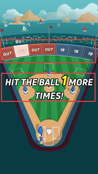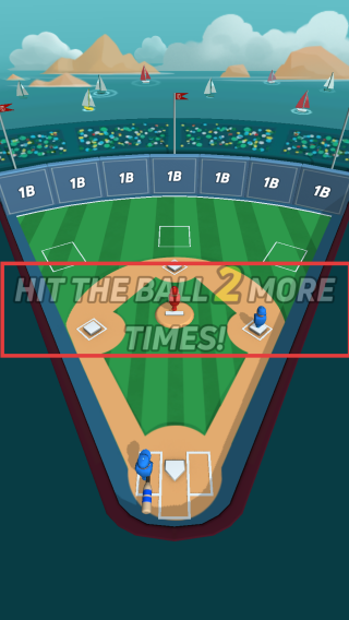3、留意场地围栏上的【OUT】和【1B】标识,避免打出界外造成【OUT】,争取获得【1B】(一垒)等有效得分机会。