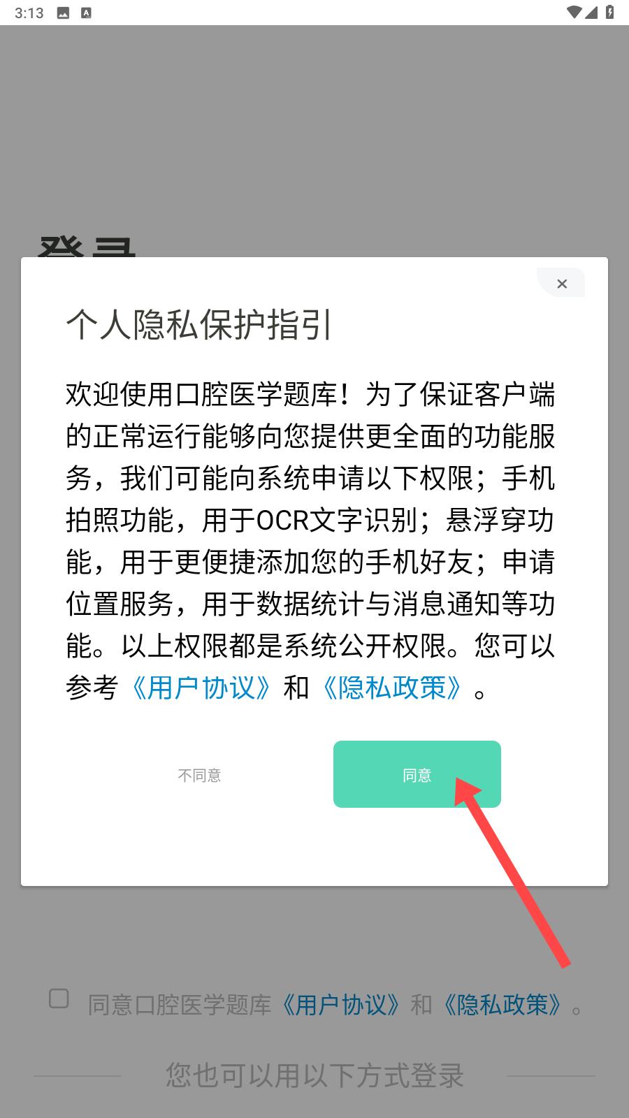 1、首次使用,在隐私保护指引弹窗点【同意】。