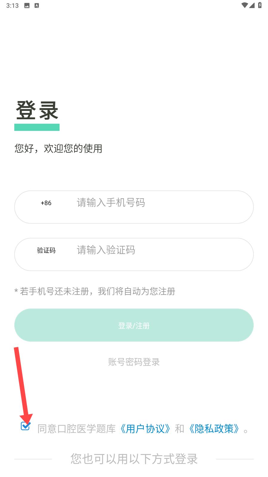 3、勾选同意协议,点【登录/注册】,手机号未注册则自动注册并登录。