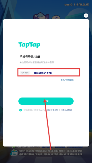 1、进入游戏,点击【TapTap登录】。