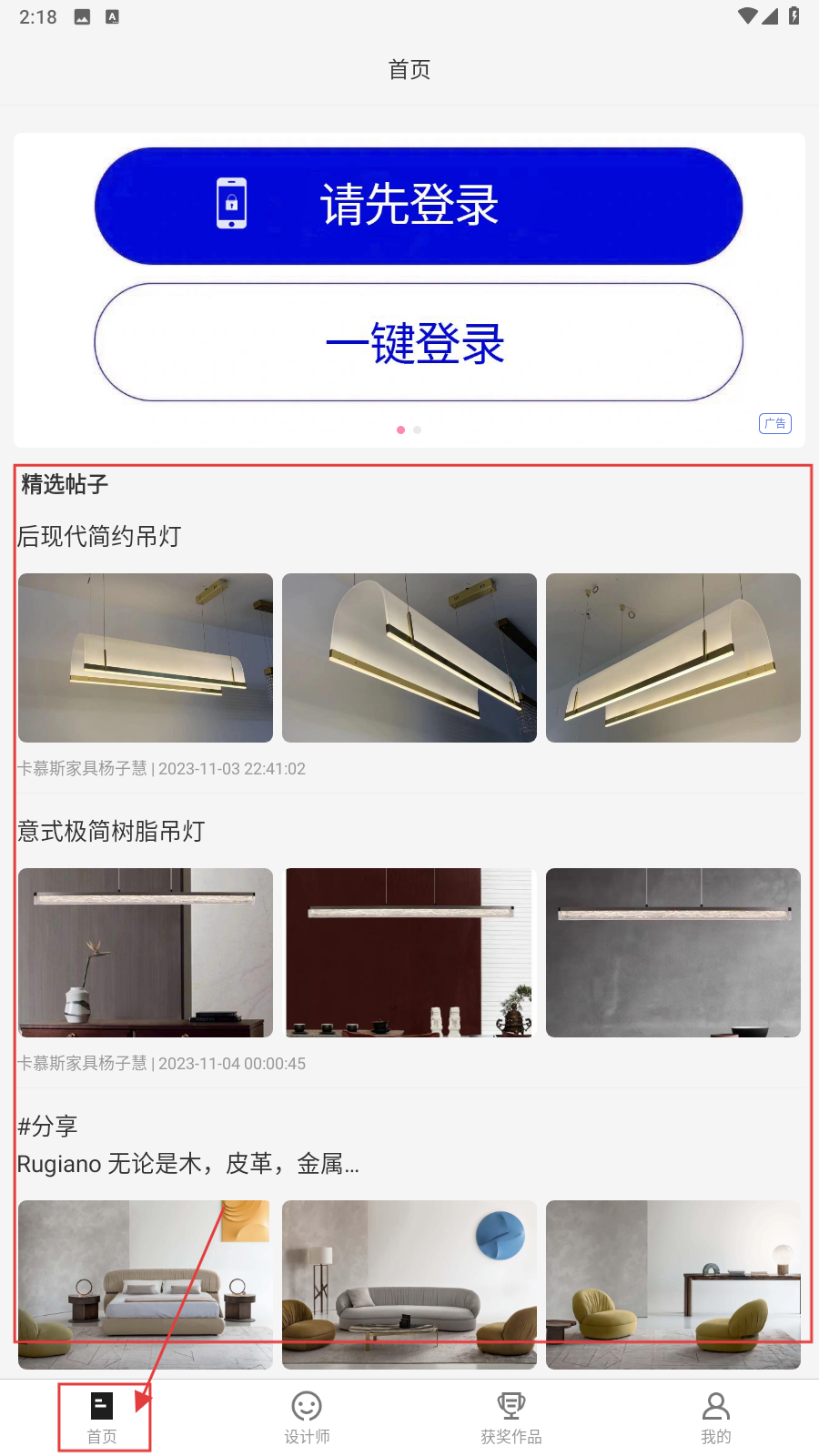 2、点【设计师】,浏览南舍空间设计等卡片,查看详情、预约。