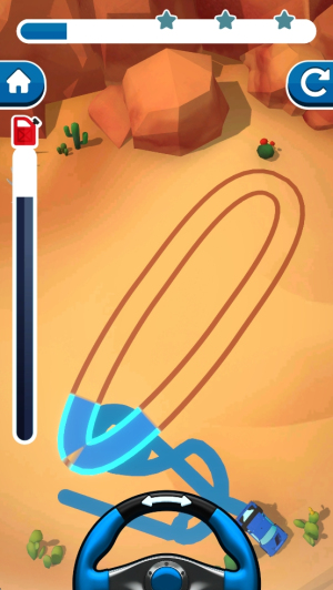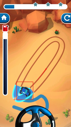 2、规划漂移路线:观察关卡地形,提前构思图案轮廓,通过滑动屏幕控制赛车方向与速度。