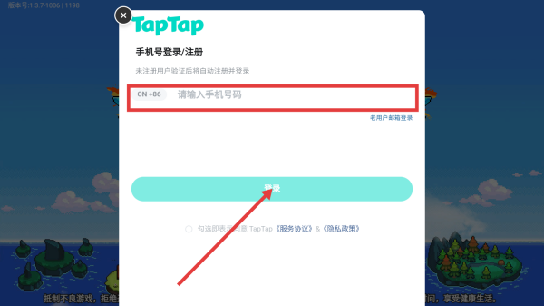 2、输入手机号码,点击【登录】,获取验证码。