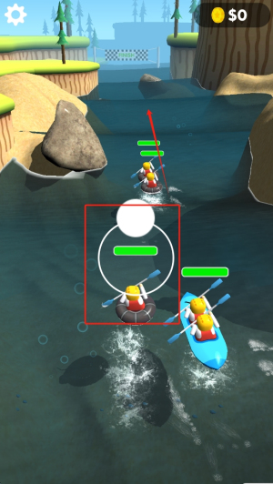 2、在比赛过程中,长按画面中皮划艇对应的白色圆形区域,控制皮划艇加速前进,注意躲避障碍、超越对手 。