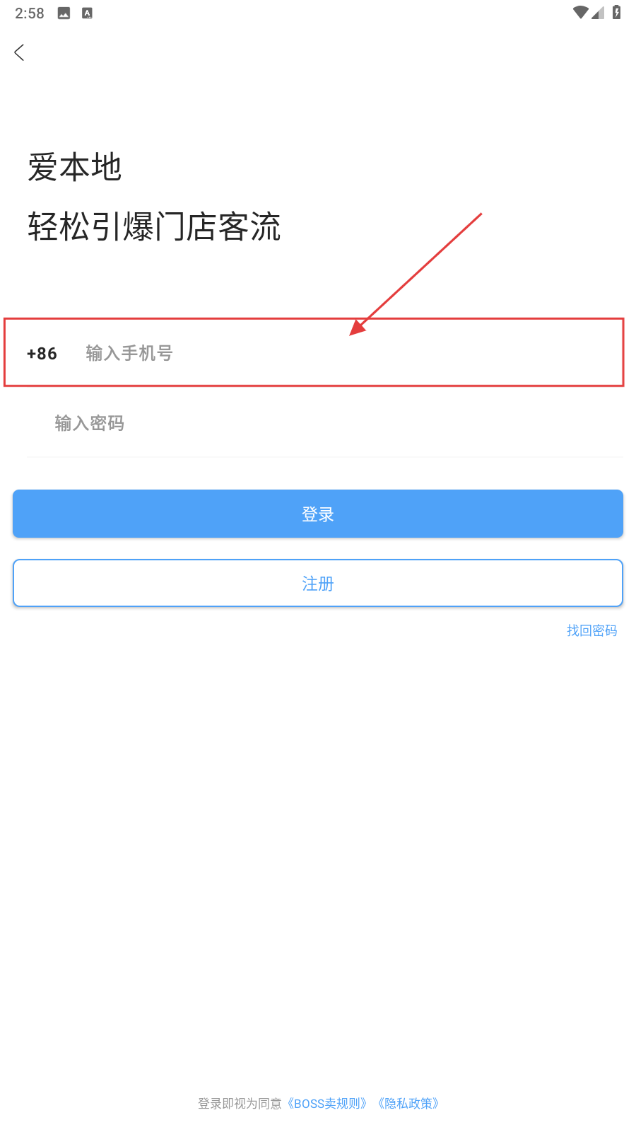2、点击带【手机号输入框】,输入号码。再点【密码输入框】,录入密码。