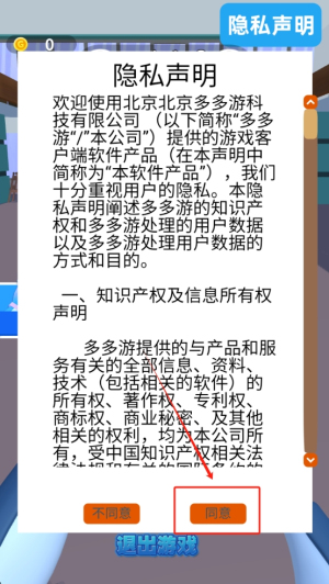 1、阅读隐私声明内容后,点击 “同意” 按钮,确认接受条款,进入游戏 。