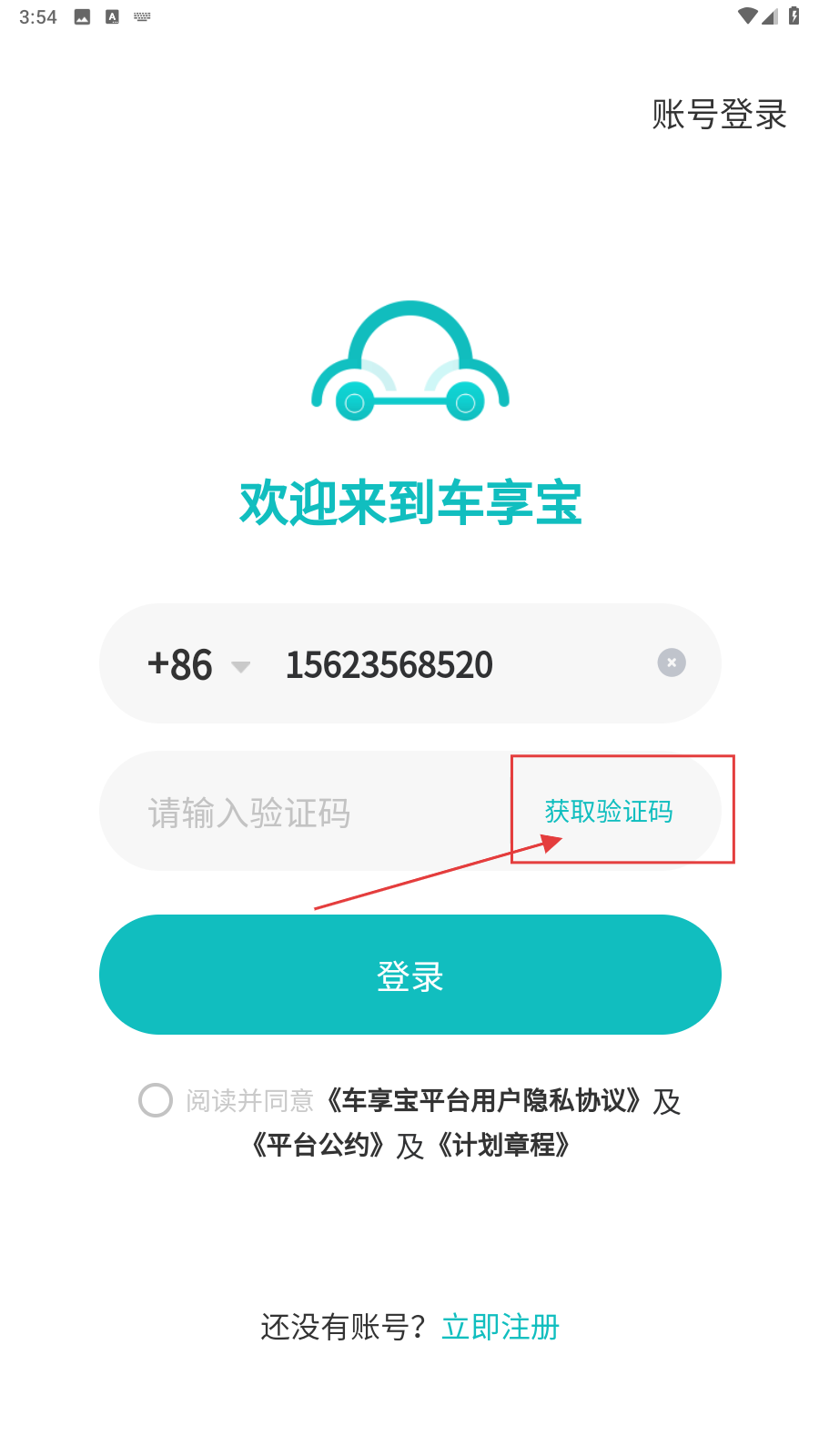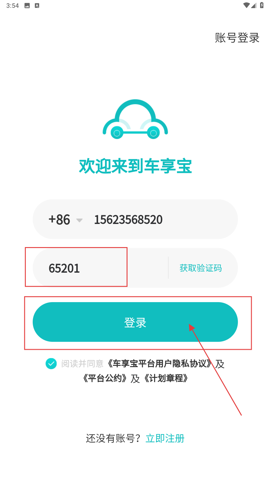 1、打开应用,在【车享宝登录】界面,进入登录流程。