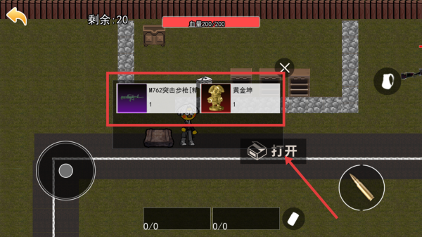 3、遇到可开启的箱子时,点击【打开】按钮,获取如【M762突击步枪[精]】【黄金坤】等道具,提升自身战斗能力。