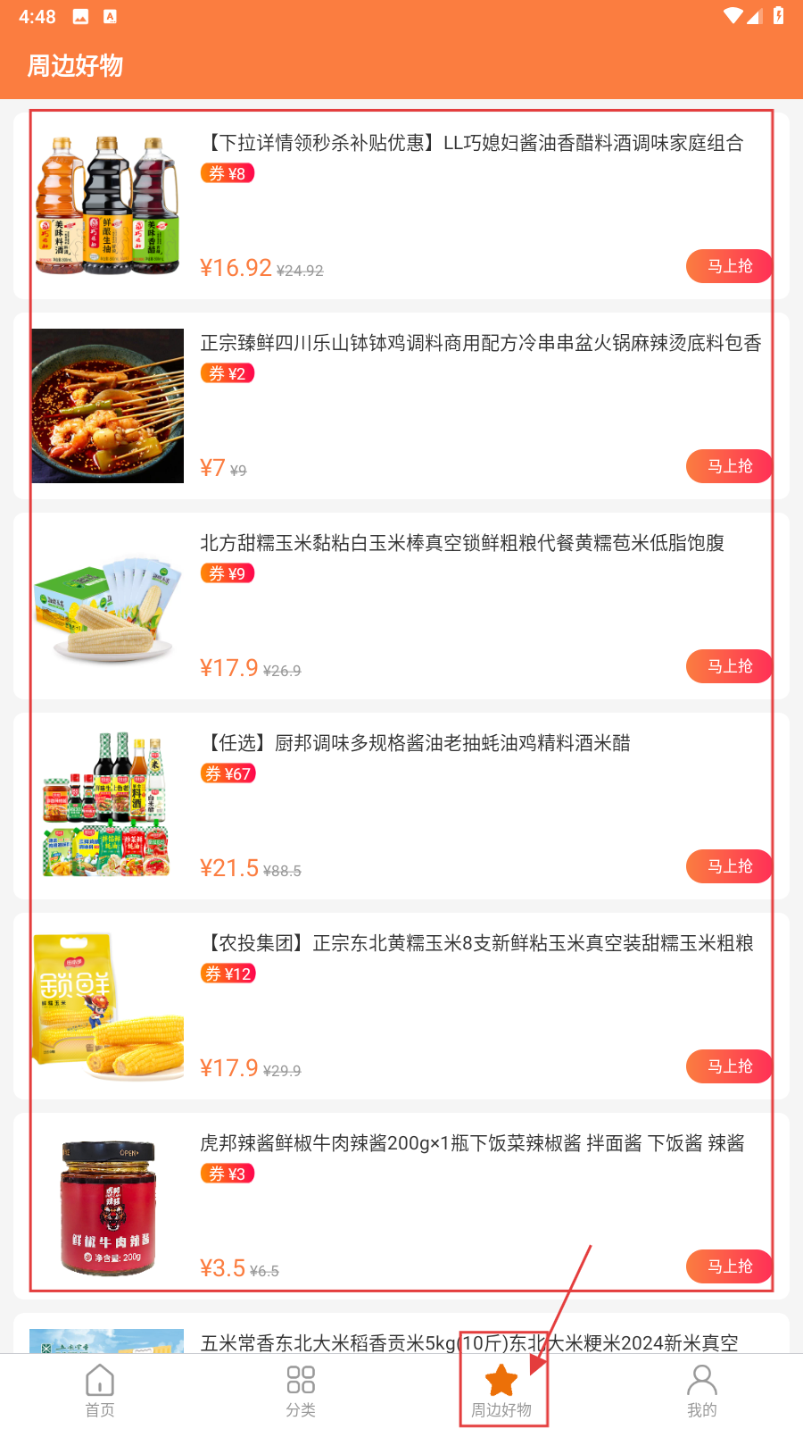 3、点底部【周边好物】,进商品列表页,点商品条目看详情、购买。