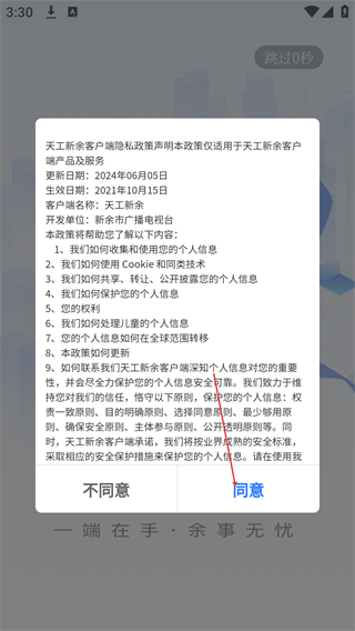 1、在应用启动后的“隐私政策声明”弹窗中,点击【同意】按钮,进入应用首页。