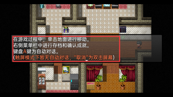 1、遇到对话场景,可按键盘A键自动对话,触屏模式下无自动对话,可双击屏幕取消对话或进行相关操作。