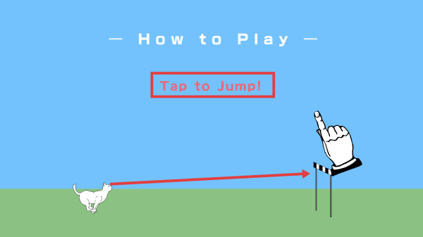 1、进入游戏教学界面,根据【TaptoJump】提示,点击屏幕让游戏角色(猫)跳跃,越过障碍物。
