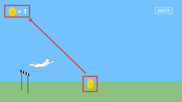 3、在游戏过程中,注意收集画面中的金币,获取分数和奖励,同时留意右上角的【QUIT】按钮,可随时退出游戏。