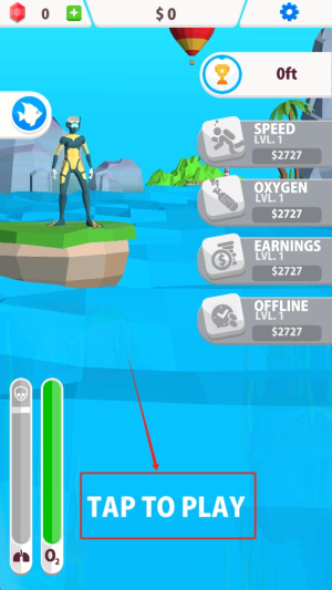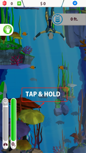 2、潜水操作:进入游戏后,通过点击并按住屏幕来控制潜水员下潜,松开屏幕使潜水员上升。