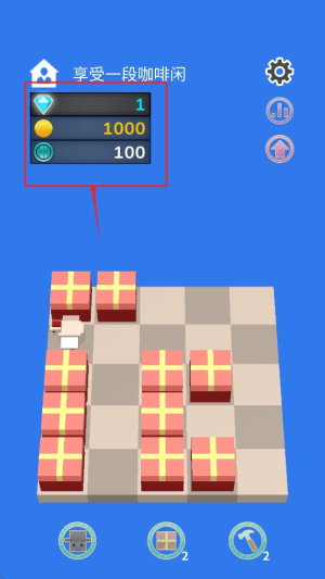 1、开启合成之旅:进入游戏,置身摆满基础礼物的场景,滑动屏幕开始推动礼物移动。