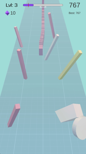 3、收集赛道宝石:拾取散落在赛道上的宝石,同时注意身后不断逼近的骨牌浪潮。