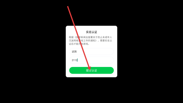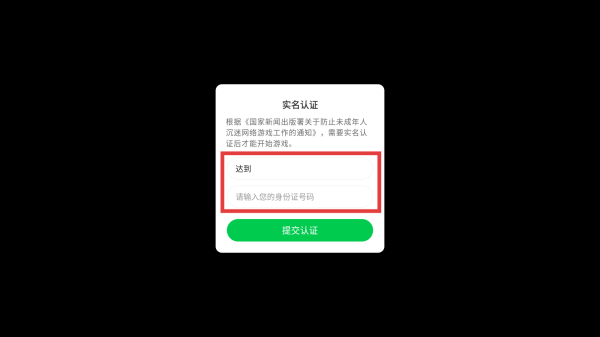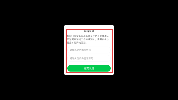 1、进入游戏,自动弹出实名认证界面。