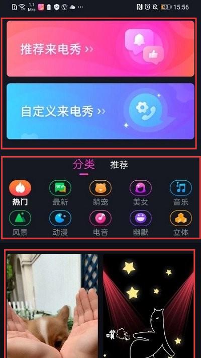 1、在应用首页,选【推荐来电秀】/【自定义来电秀】,或从分类(热门、萌宠等)找来电秀内容。