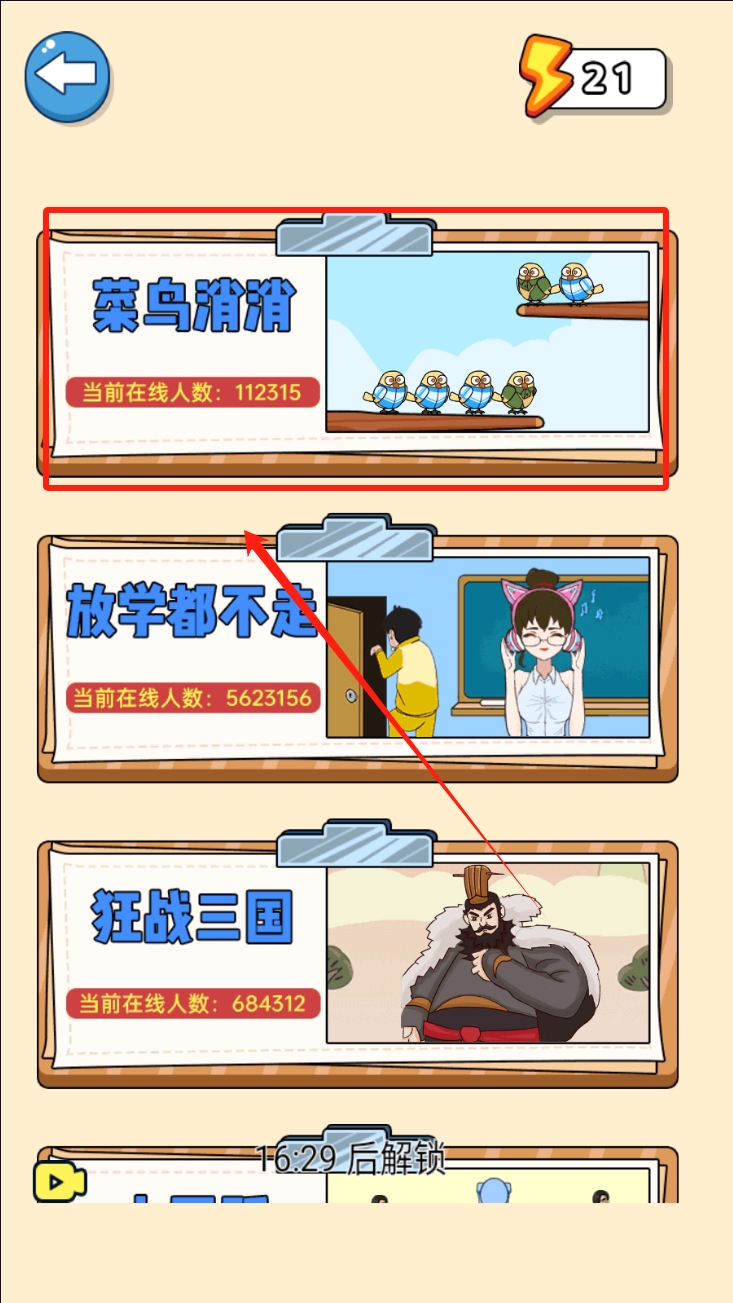 2、接着,你会看到不同的游戏模式和关卡。选择一个你感兴趣的模式,例如“菜鸟消消”,开始你的游戏挑战。
