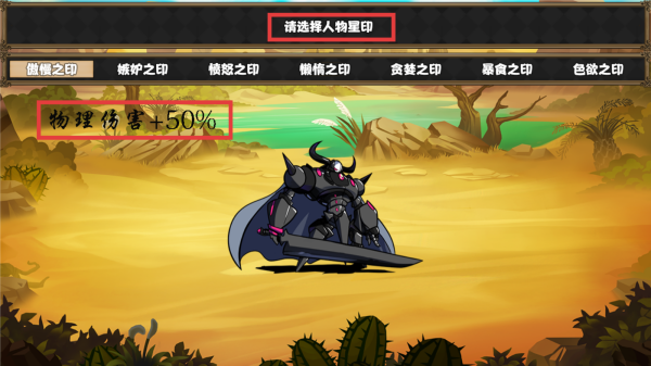 1、游戏初始,在选择人物星印界面,根据自身战斗风格偏好,选择如“傲慢之印”(物理伤害+50%)等星印,增强角色战斗能力。