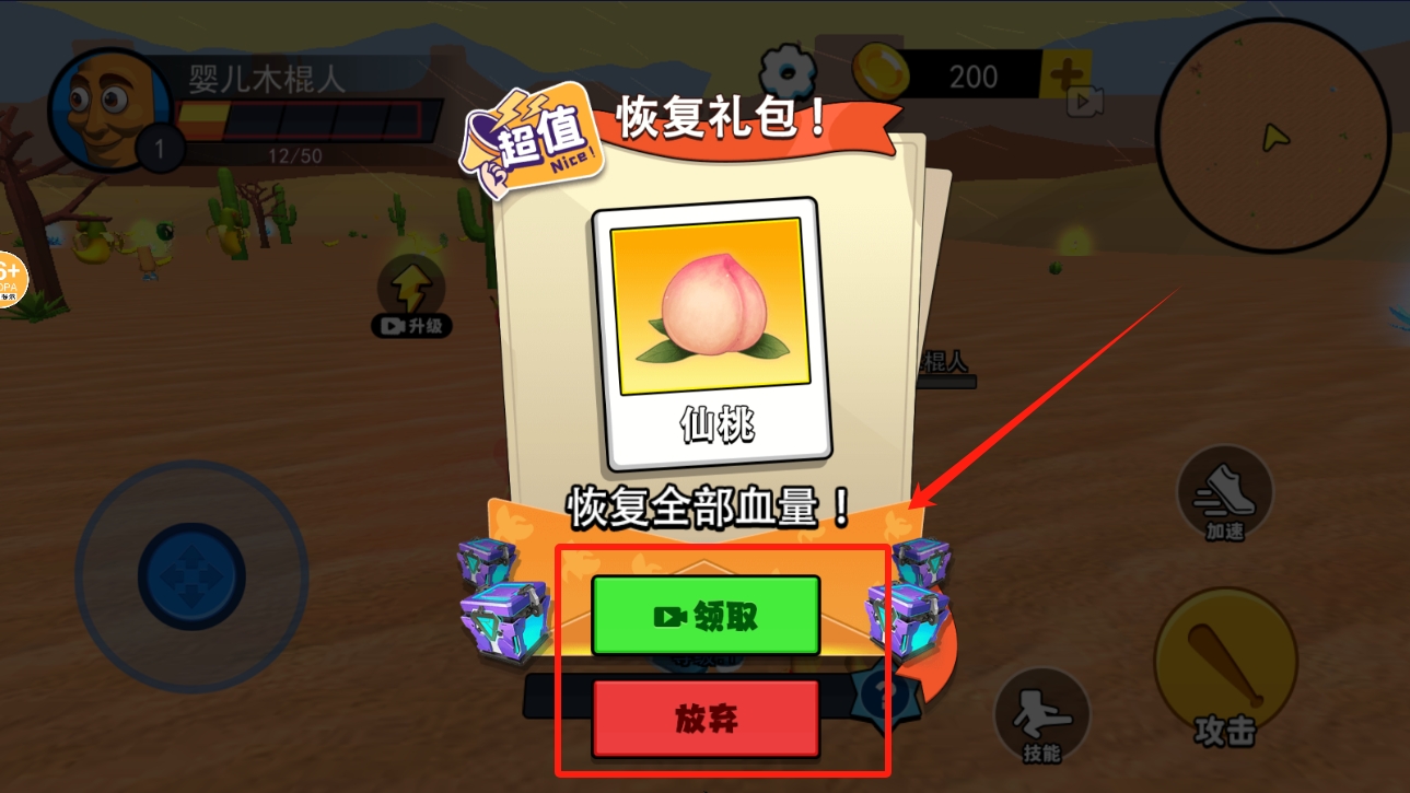 3、最后,当你在游戏中获得恢复礼包时,点击“领取”按钮来恢复角色的生命值。这可以帮助你在战斗中生存更久。