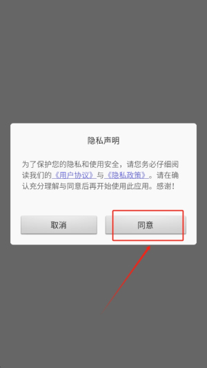 1、同意隐私政策:点击“同意”按钮接受隐私政策。