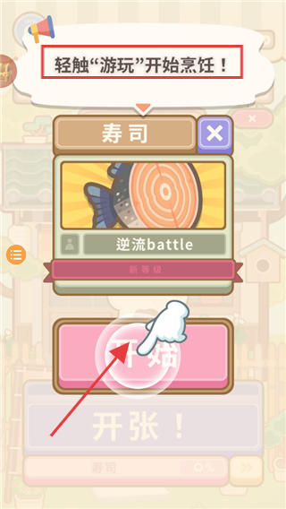 1、进入游戏后,根据提示轻触“游玩”按钮开始烹饪(如制作寿司),开启游戏进程。