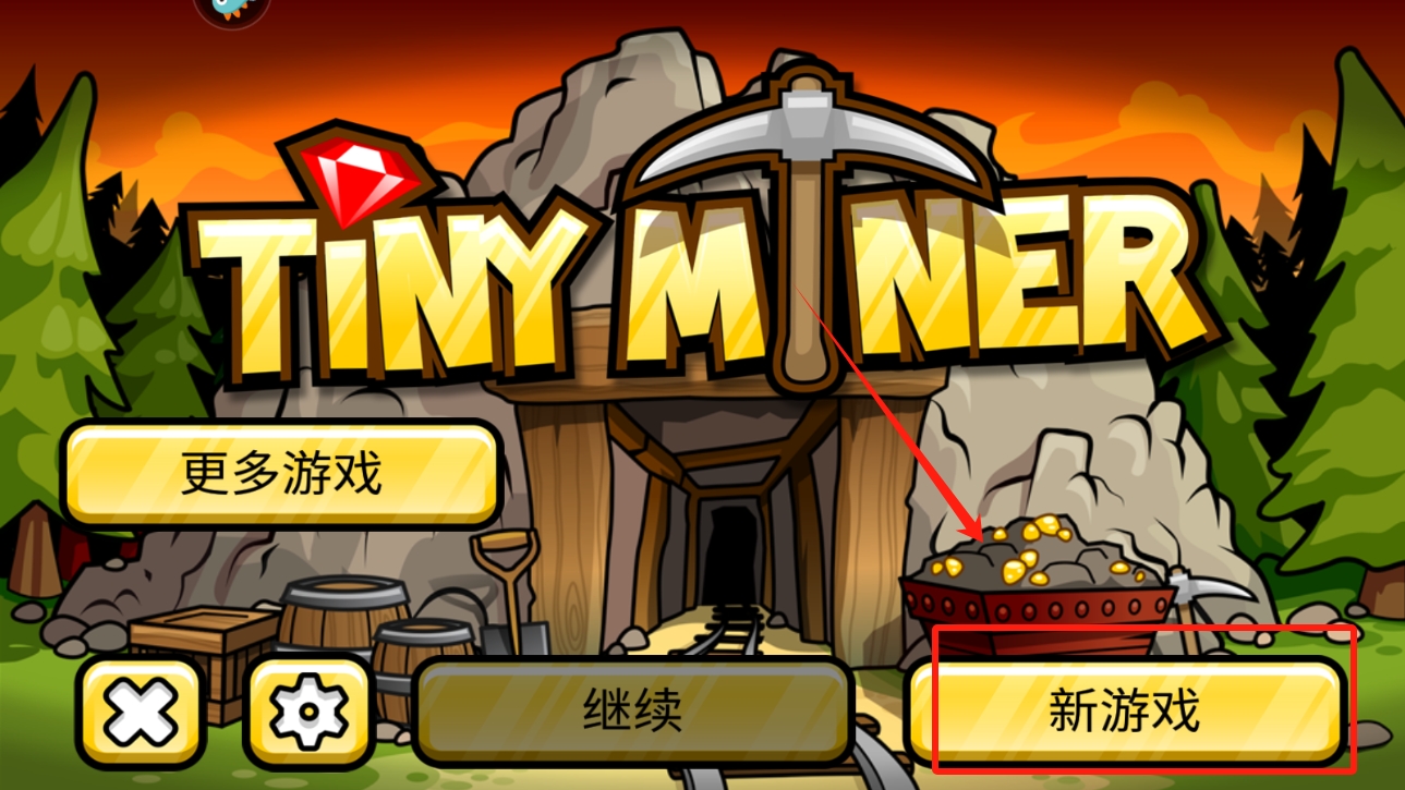 1、首先,打开小小矿工游戏,点击“新游戏”按钮开始新的游戏。这个选项会带你进入游戏的初始设置。