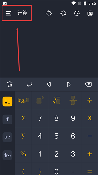 1、在计算器主界面,点击左上角【计算】按钮,可展开功能菜单,进入设置等相关页面调整计算器参数。