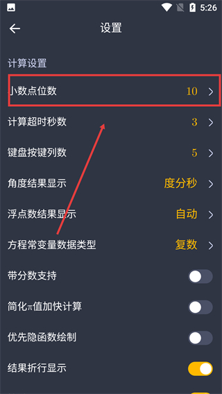 2、进入设置页面后,选择【小数点位数】选项,可进入位数选择界面,调整计算结果显示的小数位数。