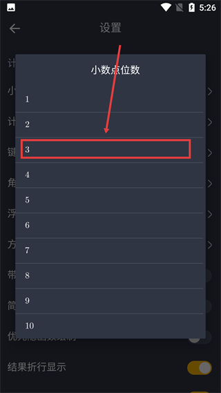3、在小数点位数选择界面,点击【3】选项,可将计算结果的小数位数设置为3位,适配精度需求。