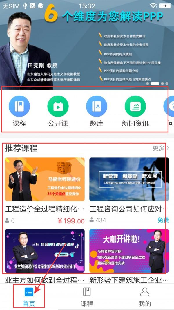 1、打开应用,在【首页】界面,按需选择(如课程、公开课),进入对应板块。