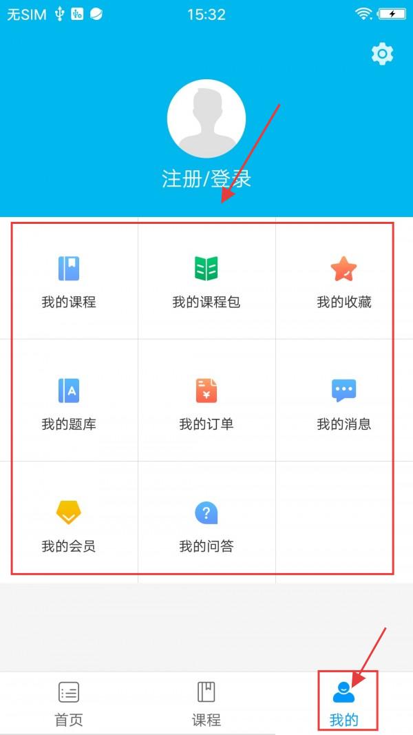 3、进入【我的】页面,点击功能入口(如我的课程),查看/管理已购课程、学习资料等,完成学习相关任务。