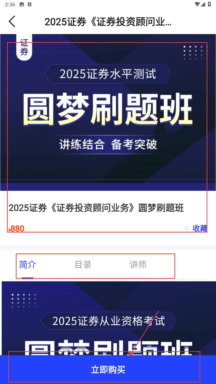 3、在课程详情页,查看简介、目录等,点击【立即购买】,完成课程选购即可上课。