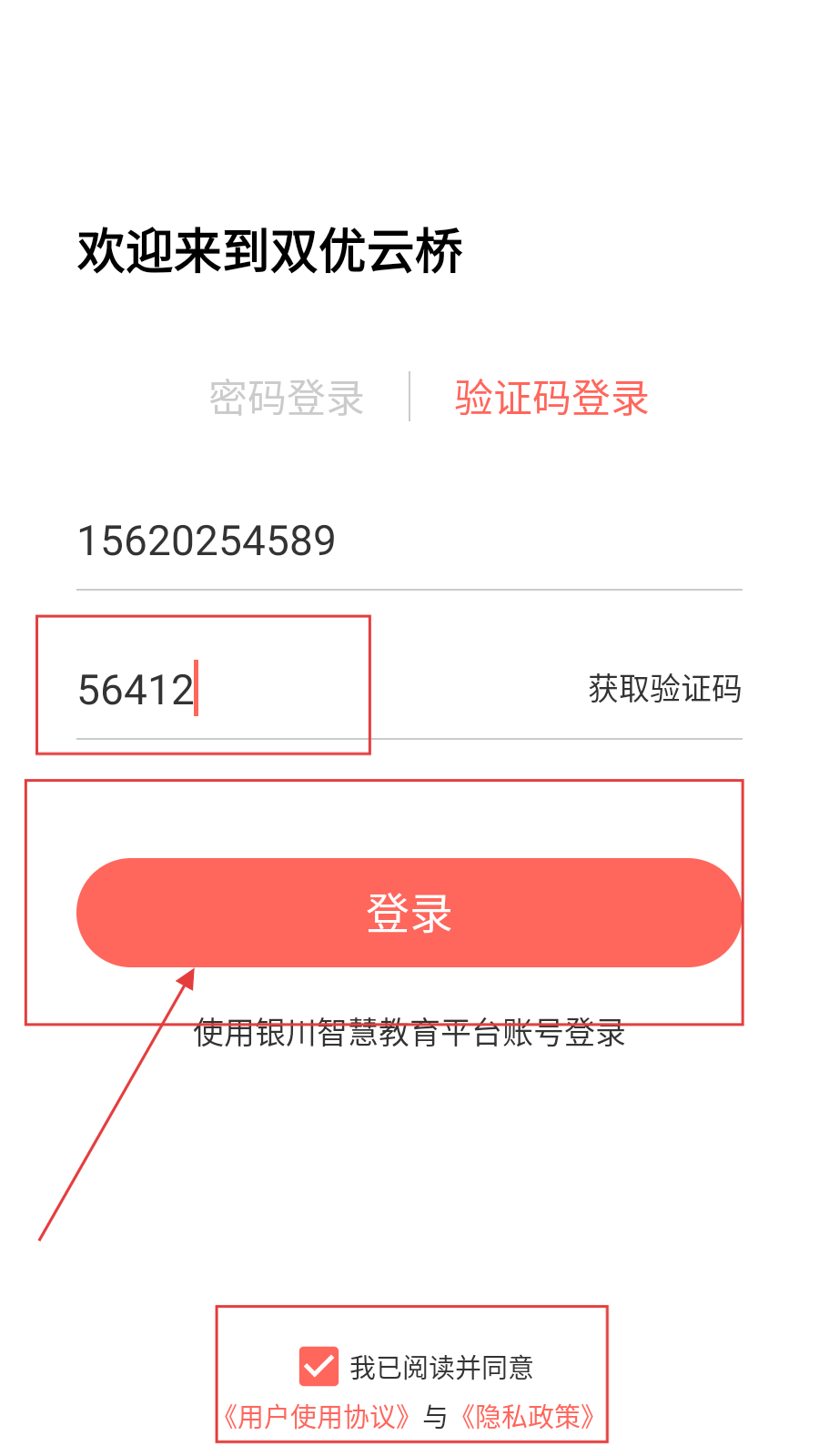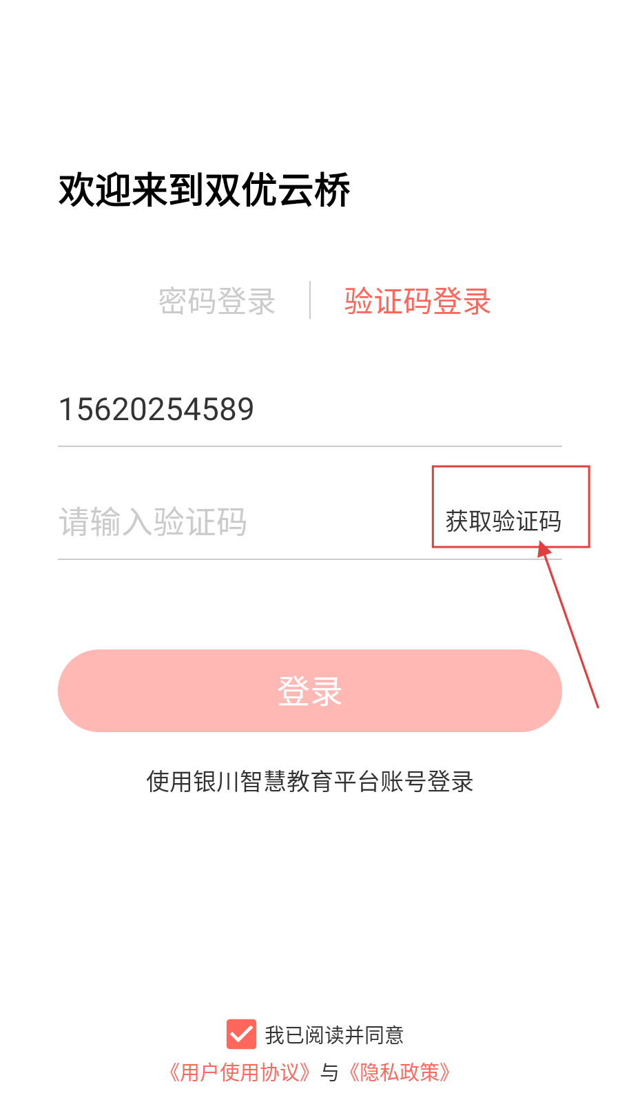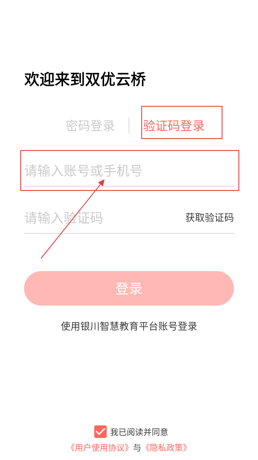1、打开应用登录页,选【验证码登录】,输入手机号。