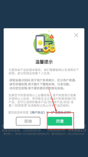 1、同意隐私协议:点击“同意”按钮以接受隐私协议并开始游戏。