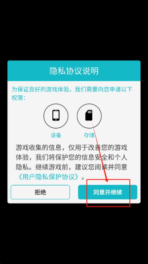 1、接受隐私协议:点击“同意并继续”按钮以接受隐私协议并开始游戏。