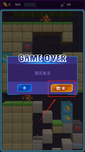 3、游戏结束与复活:游戏结束后点击“是”按钮进行复活。